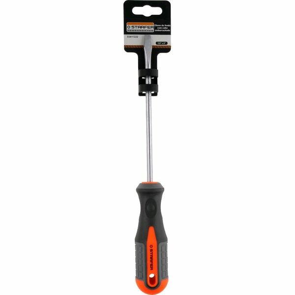 Chave de fenda emborrachada Starfer possui cabo ergonômico e emborrachado para maior conforto e segurança. Adequada para aperto e desaperto de parafusos.