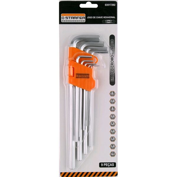 Chave Hexagonal Longa Jogo c/9 peças 1,5 a 10 mm Allen - Starfer