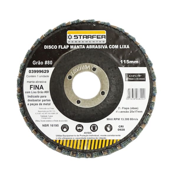 Disco Flap Manta Abrasiva 4.1/2" com Lixa Grão #80 Fina (Azul) - Starfer