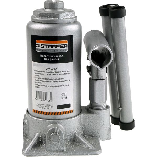 Macaco Hidráulico tipo garrafa Starfer é indicado para elevação de veículos ou cargas de acordo com a sua capacidade.